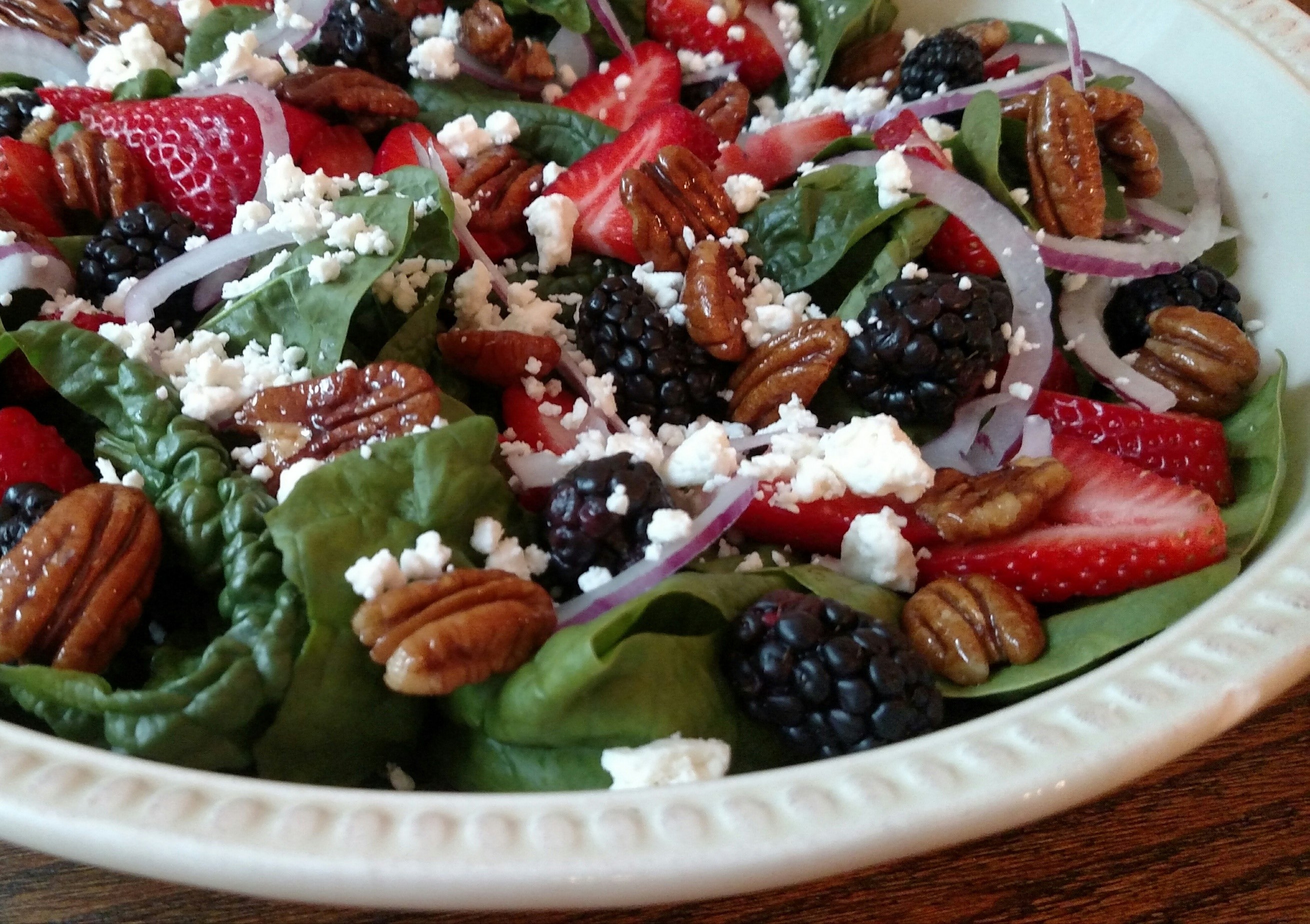 This Berry Spinach Salad is that kind of dish. It takes minimal effort to prepare, is full of wholesome, healthy ingredients, and it shouts SUMMERTIME CELEBRATION!