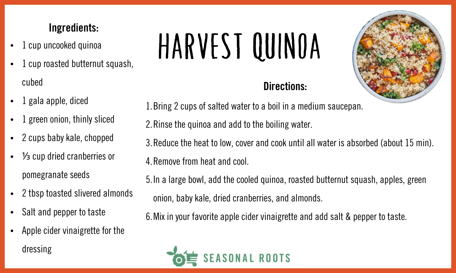 Gotta have fall recipes as we transition into the fall season! With cooler temps and shorter days bringing us a beautiful bounty of fall produce, the Seasonal Roots team has gathered up our easiest, tastiest recipes to make cooking it all up a piece of cake! First, a few tips…