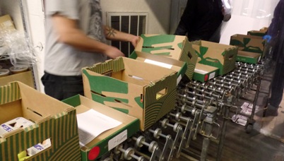 At the end we do quality control, checking to make sure that each order has everything it’s supposed to have.