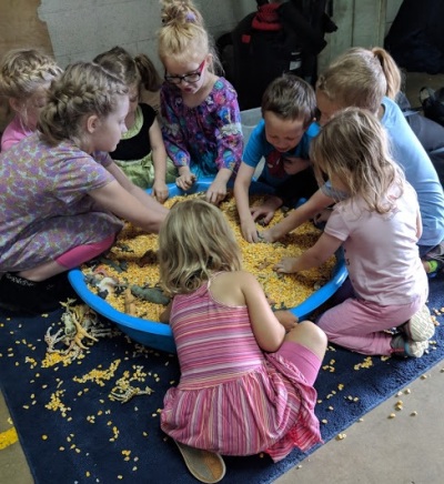 The smaller ones among us dove into a corn-filled kiddie pool, which hid a whole herd of plastic animals.