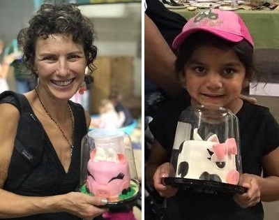Zee also raffled off four mini animal cakes — a pig, a kitty, a cow, and a… dragon?