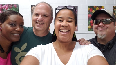 A lot of members of the Seasonal Roots team were there, too. Jamila, in the middle taking the selfie, is our Veggie Fairy Godmother, the one who helps us veggie fairies on our appointed rounds as we take care of members and support local farmers. Zee is on the far left, and between them is Duane, our founder and Head Veggie Fairy. On the other side of Jamila is Sam, your Farmer Connector who vets each farmer and food artisan and chooses what goes in the market every weekend.