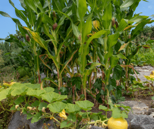 As the corn grew tall, the beans would climb it like a pole. Meanwhile the sprawling squash became a ground-cover, shading the soil, conserving moisture, and protecting the bean stems.