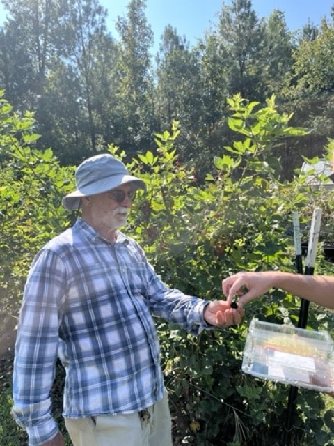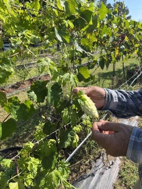 Rafie specializes in growing berries and saw the opportunity to grow muscadine grapes in Virginia. The species is native to the region and, therefore, grows well and is resistant to many diseases common to other species of bunched grapes. In addition to growing muscadine grapes himself, Rafie works with regional farmers and the Virginia Cooperative Extension through VSU to share his knowledge with others in the field.