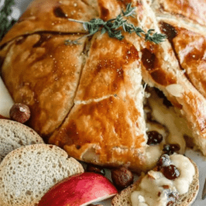 combines Cranberry Pecan Stuffed Brie wrapped in puff pastry with Leek & Thistle’s signature spinach artichoke dip.