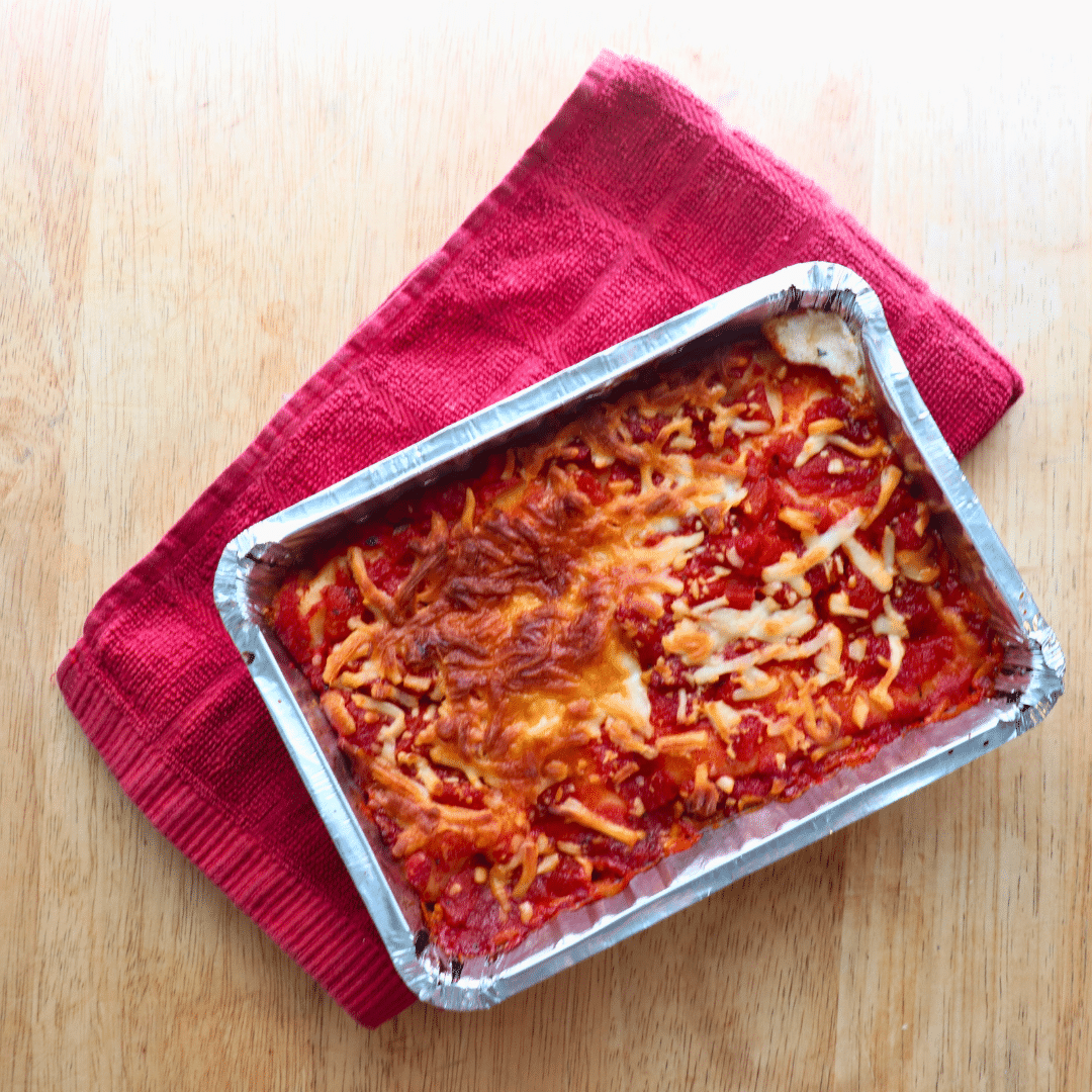 (Ingredients: Eggplant, summer squash, onions, peppers, tomato paste, diced tomatoes, extra virgin olive oil, garlic, cinnamon, allspice, chili flakes, oregano, smoked paprika, salt, pepper, feta, oregano, parsley, chives. CONTAINS MILK)